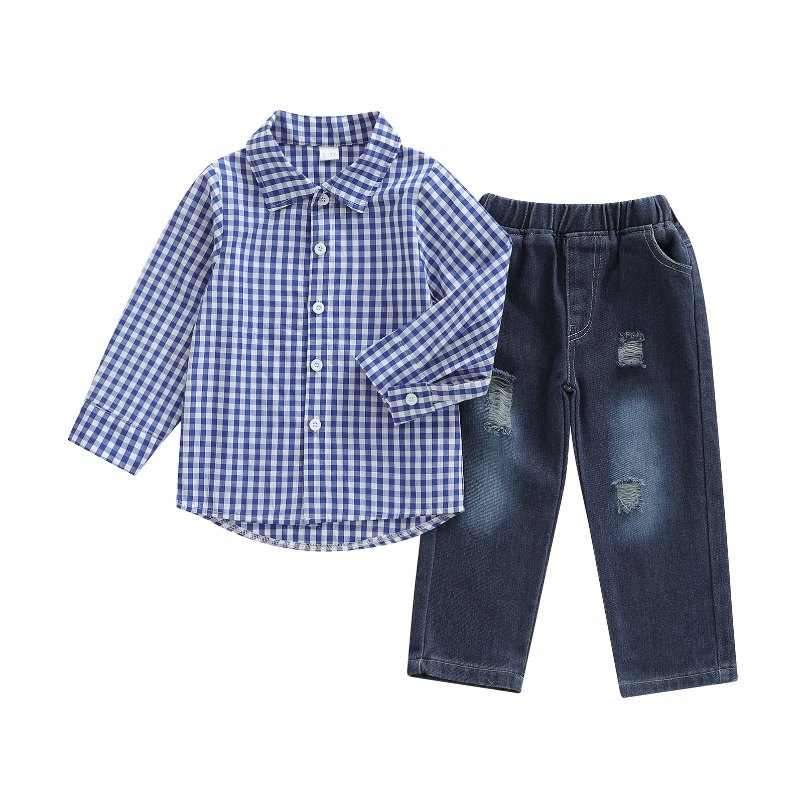 Boys 2-Piece Set Plaid Shirt with Distressed Denim Jeans